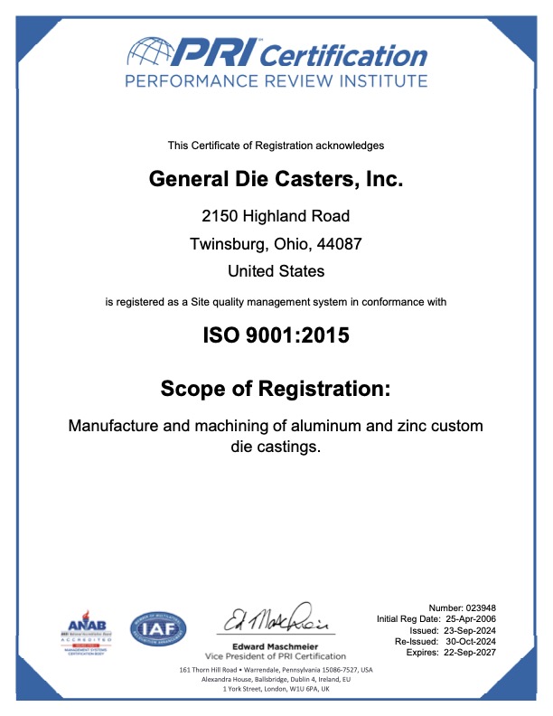Our ISO 9001:2015 registration validates our commitment to a quality management system and should provide a sense of confidence among our customers.